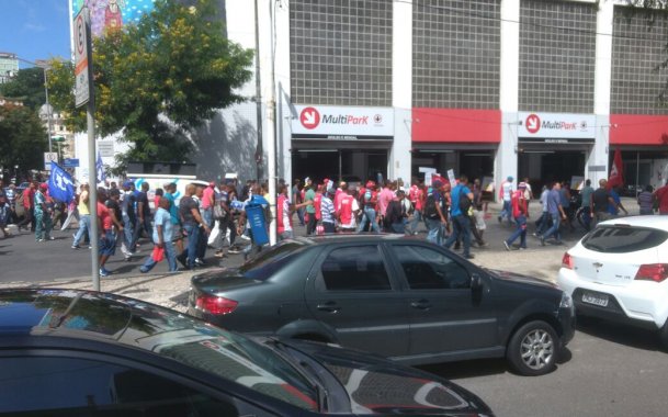 O Sindicato dos Vigilantes da Bahia (Sindvigilantes) permanece com as manifestações já no segundo dia de greve, nesta quinta-feira (25). Os manifestantes passeiam pelas ruas do Comércio da capital baiana aos gritos de “Patrão caloteiro, pague meu dinheiro”. Em entrevista ao Bahia25h, o presidente do Sindvigilantes, José Boa Ventura disse que o sindicato não está conformado com a situação. “A categoria está indignada com a posição patronal de só oferecer 1% de reajuste e, pior, quer a gente faça hora extra pra eles no dia de folga. Não tem acordo com isso”, garantiu Boa Ventura.