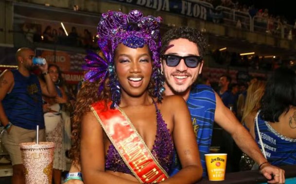 Os dois foram flagrados trocando beijos e carinhos enquanto acompanhavam as apresentações na avenida. Na véspera, Iza havia roubado a cena ao desfilar como rainha de bateria da Imperatriz Leopoldinense.