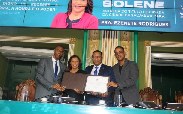 A Câmara Municipal de Salvador prestigiou mais um nome na noite desta quinta-feira (18), dessa vez, a pastora Ezenete Rodrigues, líder evangélica da capital baiana recebeu o título de Cidadão Soteropolitana – honraria da Casa.